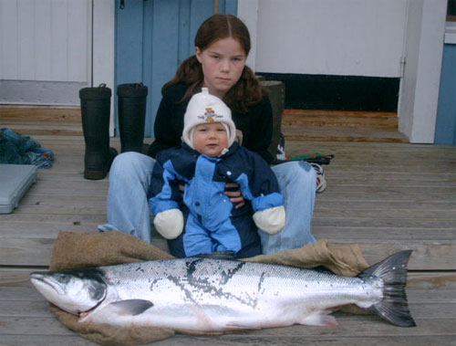 Henna, Ailu and a 14 kg salmon. This fish was caught in the spring of 2003.